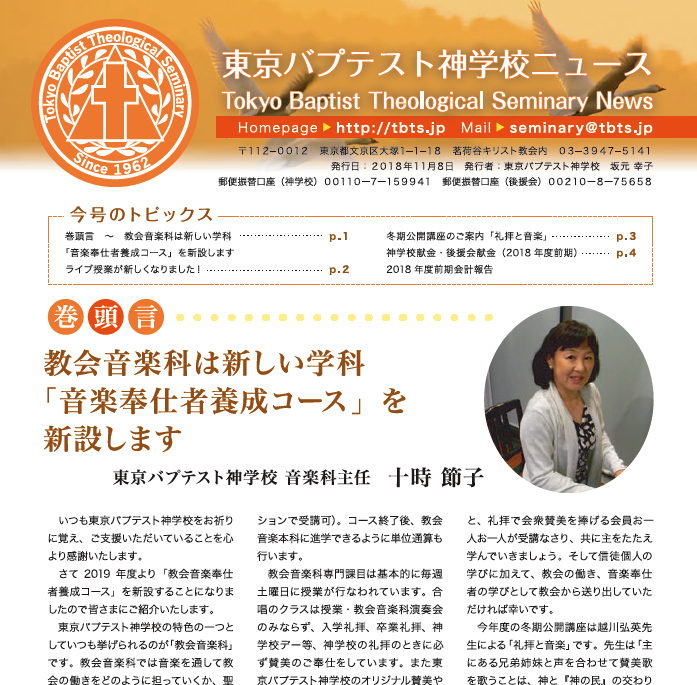 神学校ニュース2018年11月号