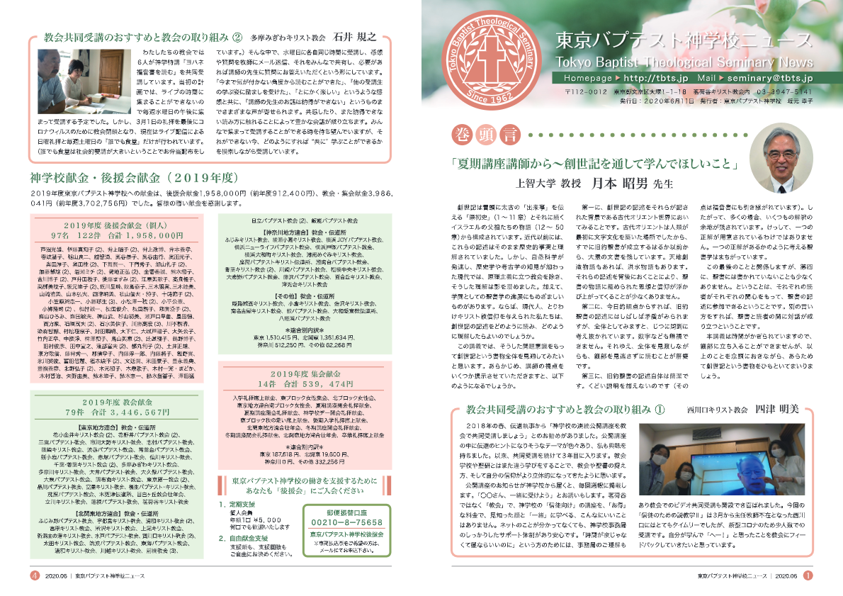 2020年6月号 神学校ニュース